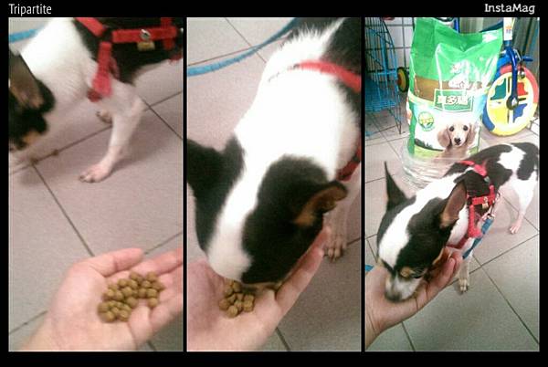 我還把寶多福飼料給七仔的姐姐-小乖乖(她住在我媽媽家)試吃,沒想到他也超喜歡吃,瞧瞧這個影片他吃的超猛的拉![]()